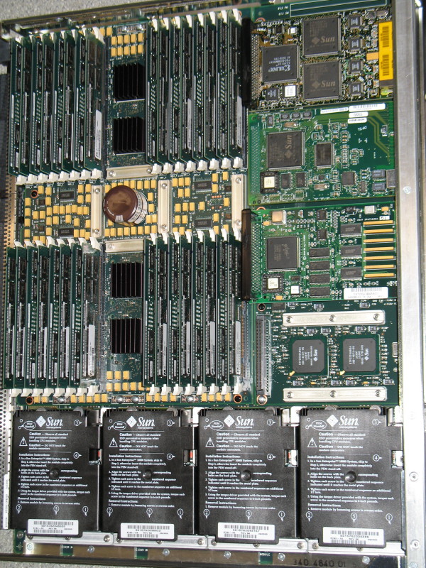 This is a system board for the E10k. You see at the bottom the 4 UltraSparc II 400 MHz processors